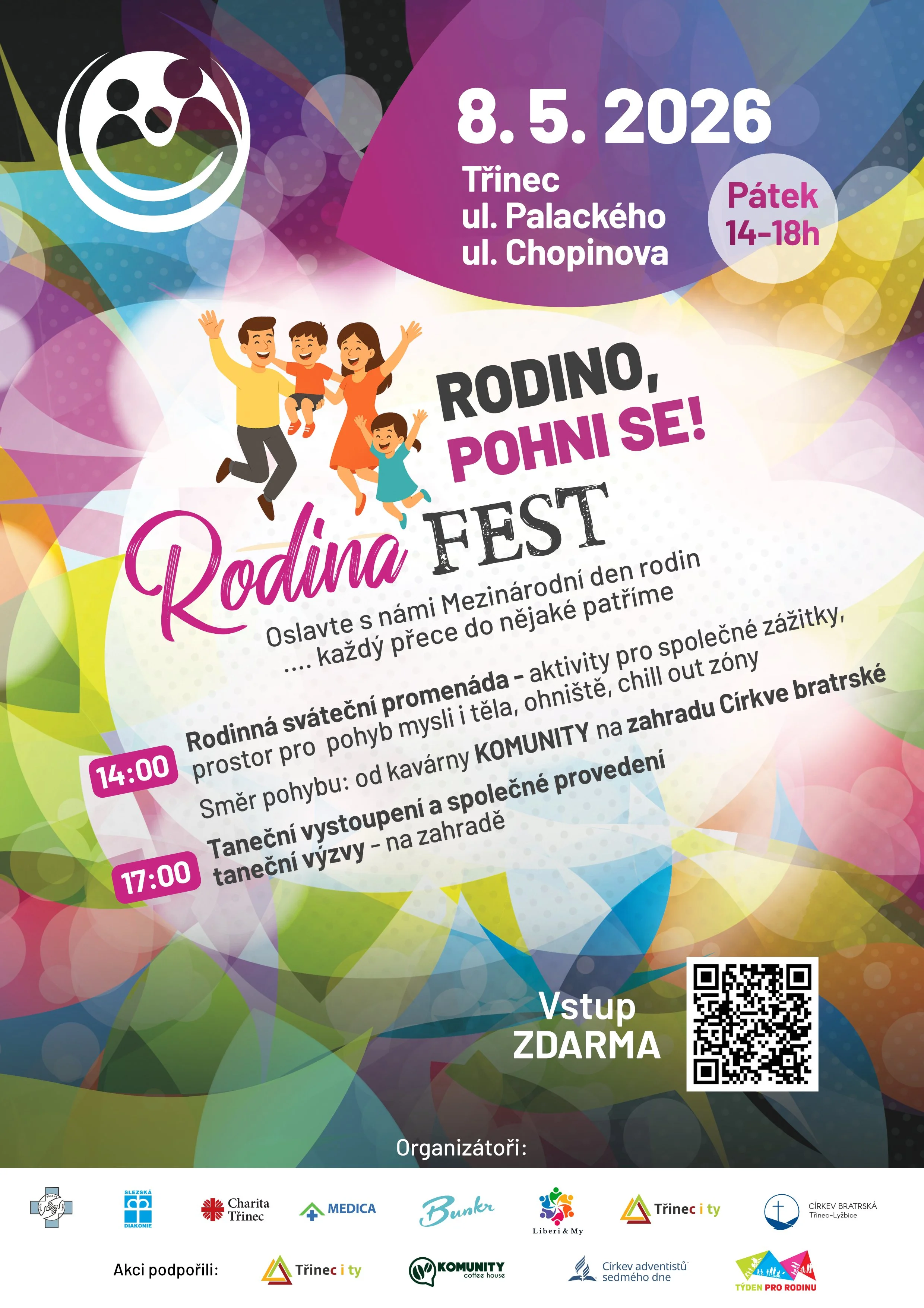 Letos podruhé se zapojujeme do akce třineckých neziskovek “Rodina FEST”. Srdečně vás zveme na spoustu aktivit a zábavy pro rodiny probíhající na Palackého ul. s finálem na zahradě naší modlitebny!